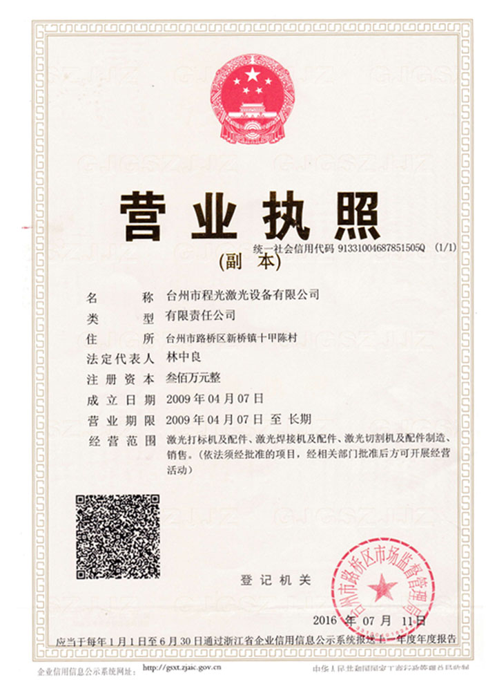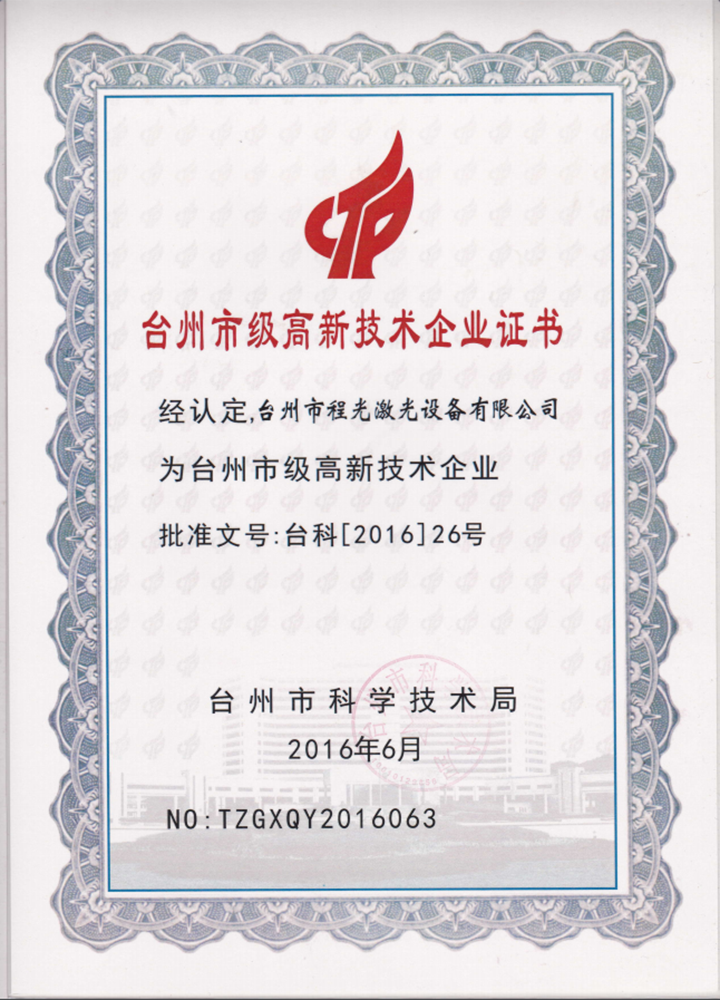 Taizhou Chengguang laser equipment Co. Ltd is a laser marking machine, laser cutting machine, laser engraving machine, laser equipment R & D, production and sales of high-tech enterprises, the development of laser equipment production has passed ISO9001 international quality management system certification standards. The company has products have strong design capabilities, the main production and sales of various types of laser engraving products, including the depth of laser marking machine, laser marking machine, YAG series laser engraving machine, laser engraving machine, CO2 series of diode end pumped laser engraving machine, laser welding machine and other products. Products with stable performance, convenient operation and maintenance, widely used in automobile and motorcycle parts, hardware tools, sanitary ware, electronic components, electrical appliances, jewelry, plastic products, mobile phone keys, leather clothing, glass products, crafts, food packaging and other fields. The company spirit of "mutual benefit and common development" principle, adhere to the "integrity of entrepreneurship, technological innovation, quality service, people-oriented" principle, adhere to the customer as the center, take the technology as the core, dedicated to provide you with advanced technology, stable performance, simple operation, high efficiency and energy saving of all kinds of laser processing equipment. And in the nationwide set up a complete sales and after-sales service system, to provide you with a comprehensive pre-sale, sale, and after-sales support and service. Cheng Guang laser provides high quality laser engraving products and laser technology for all walks of life, and also provides the greatest efforts for the laser industry in china!